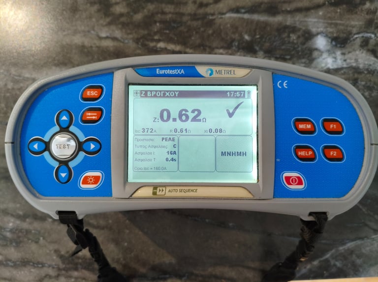 Our company equipped with the appropriate tools and specialized measuring and testing instruments, certifies your installation and issues the necessary documents on the same day. Furthermore, we handle the correction of any faults or omissions and the replacement of any components required for the safe operation of the electrical installation.